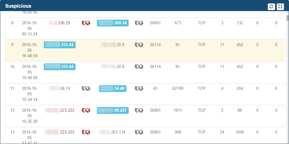 Study suspicious network activity by looking at a list of security threats detected by Spothreat's machine learning algorithm.